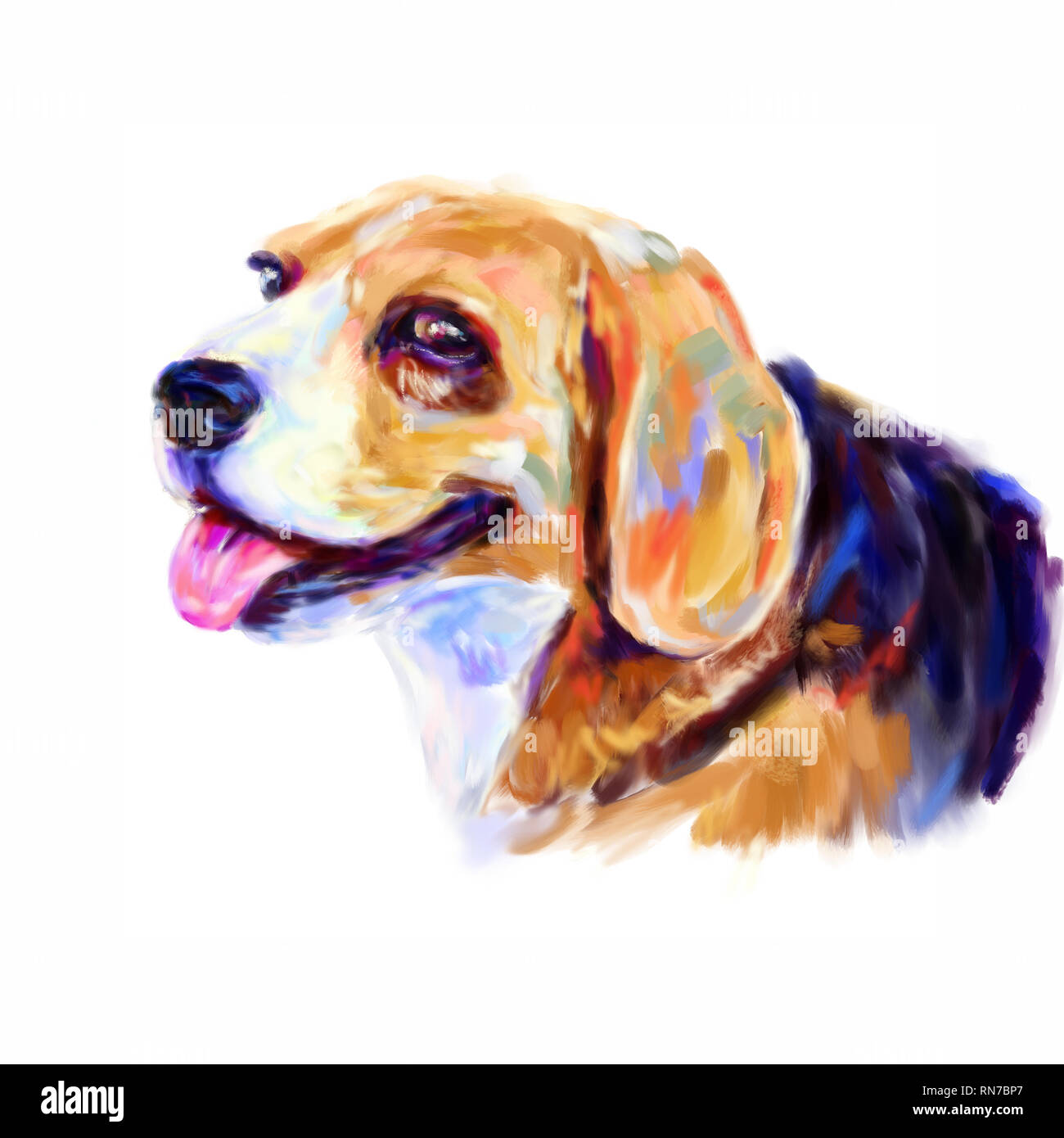 Digital painting portrait of beagle dog on white background Stock Photo - Alamy