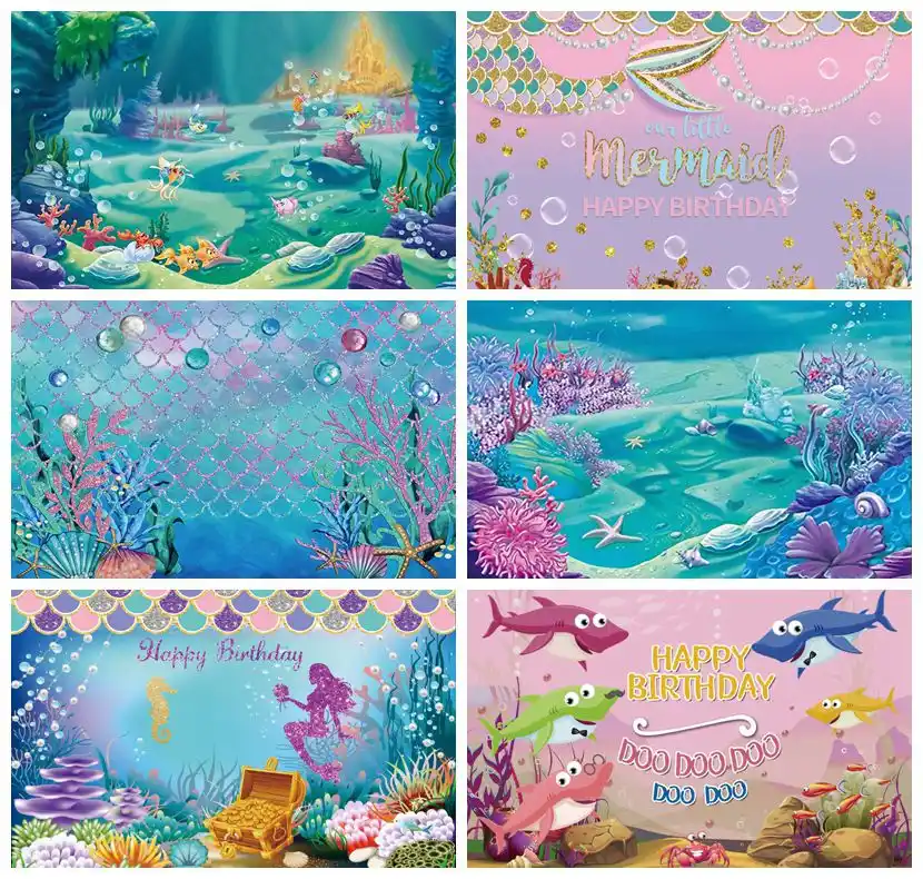 Mehofoto pequena sereia sob a cama de mar castelo corais ariel princesa fotografia pano de fundo festa de aniversário do bebê foto fundo|Fundo| - AliExpress