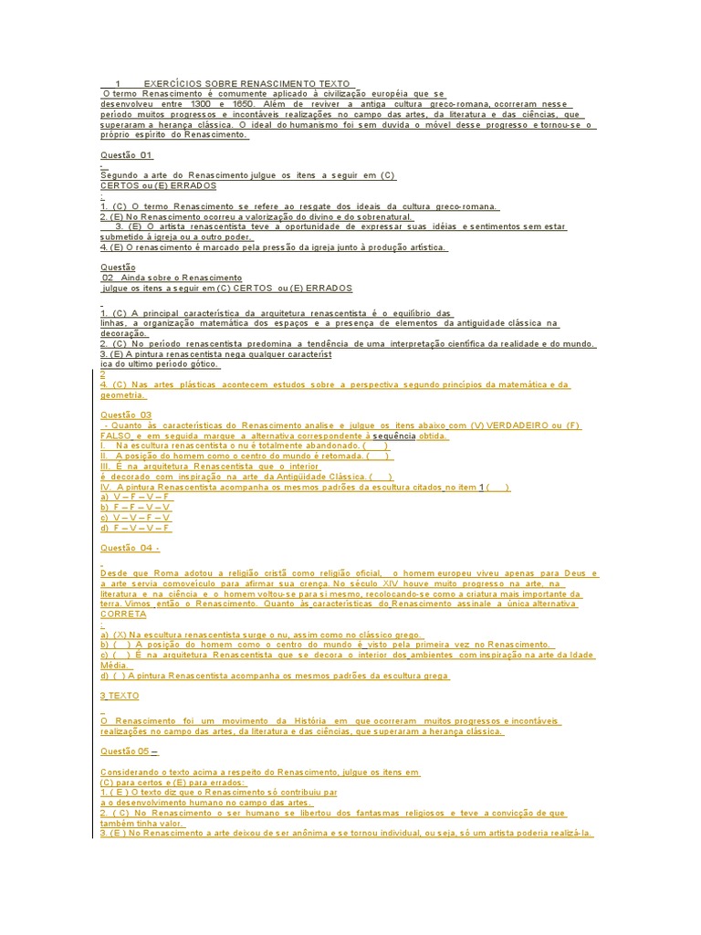 EXERCÍCIOS SOBRE RENASCIMENTO - PDF Free Download