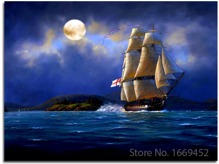 Diy pintura diamante barco à vela no mar ao luar, ponto cruz needlework mosaico 3d diamante imagens completo bordado hobby|3d diamond|diamond paintingdiy diamond - AliExpress